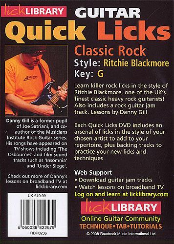 BLACKMORE RITCHIE, GUITAR QUICK LICKS CLASSIC ROCK, Key of G. DANNY Gill. 123 minuti. DVD
