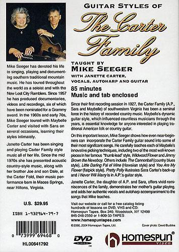 CARTER FAMILY, GUITAR STYLES OF THE. Janette Carter and Mike Seeger. TABLATURE DVD