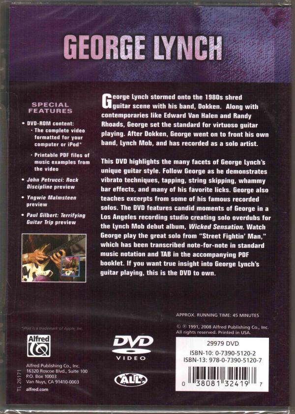 This DVD provides true insight into George Lynch’s playing and highlights the many facets of his unique guitar style. George demonstrates vibrato techniques, tapping, string skipping, whammy bar effects, and many of his favorite licks; he also teaches excerpts from some of his famous recorded solos. The DVD features candid moments of George in a Los Angeles recording studio creating solo overdubs for the Lynch Mob debut album, Wicked Sensation, and footage of George playing his great solo from "Street Fightin’ Man." The accompanying PDF booklet features note-for-note transcriptions in standard music notation and TAB.