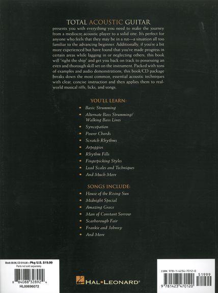 This instructional guide presents you with everything you need to make the journey from a mediocre acoustic player to a solid one. It's perfect for anyone who feels that they may be in a rut - a situation all too familiar to the advancing beginner. Packed with tons of examples and audio demonstrations, this book/CD package breaks down the most common, essential acoustic techniques with clear, concise instruction and then applies them to real-world musical riffs, licks, and songs. You'll learn syncopation, power chords, arpeggios, rhythm fills, and much more. Songs include: House of the Rising Sun - Midnight Special - Amazing Grace - Scarborough Fair - Frankie and Johnny , and more. 176 pagine.