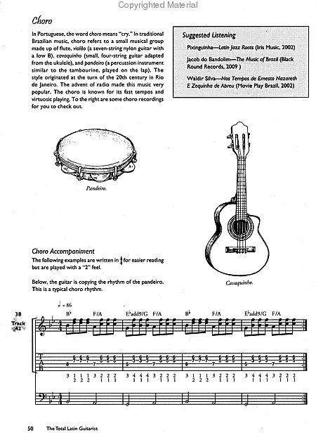 It’s time to infuse your playing with a little hot-blooded romance! The Total Latin Guitarist is an exciting journey into the world of Latin guitar playing. The book begins by teaching you soloing and accompaniment techniques used in all genres of Latin music, as well as the rhythmic backbone of many Latin styles, the clave. You'll learn to play in the Afro-Cuban styles of salsa, rumba, guaguancó, cha-cha-cha, mambo, and songo. You'll get a solid introduction to the Brazilian styles of choro, samba, batucada, partido alto, bossa nova, baião, and frevo. Other Latin styles featured are meringue (Dominican Republic); calypso, soca, and bachata (Trinidad); tango (Argentina); and ranchera, mariachi, norteño/conjunto, and tejano (Mexico). Aside from all of the important techniques involved with playing these styles, you will also learn all of the relevant theory. This book is for guitar players who are already familiar with the basics, but are looking to expand their vocabulary and repertoire in new and exciting ways. The CD features a full band demonstrating the examples in the book.