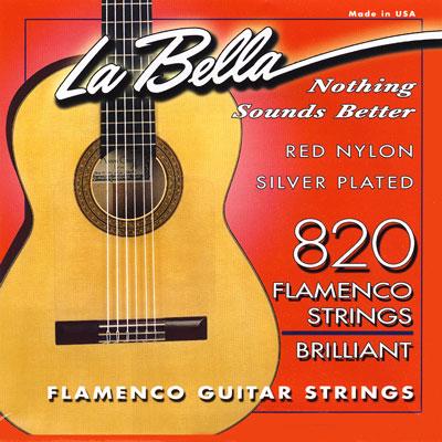 Corde LA BELLA 820 FLAMENCO STRINGS BRILLANT per chitarra Flamenco con le tre alte di colore rosso, RED NYLON SILVER PLATED