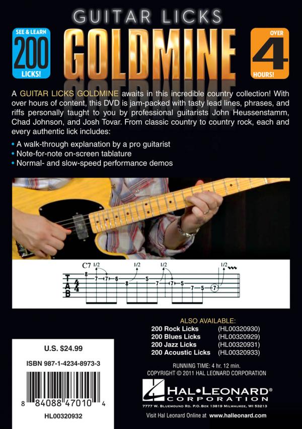 200 COUNTRY LICKS, GUITAR LICKS GOLDMINE. TABLATURE DVD
