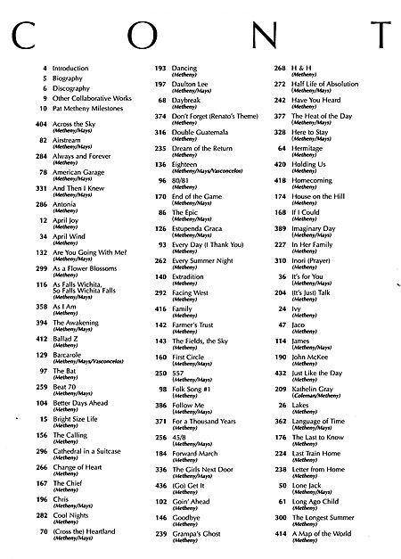 Now for the first time ever, all musicians can play and study nearly every note Pat Metheny has ever written in this amazing new book that he deems his “most exciting project since (his) first album.” Over a decade in the making and done with Metheny's intense involvement every step of the way, the Pat Metheny Songbook is a complete collection of this genius guitarist/composer's songs from the recording of Bright Size Life in 1975 to today. This comprehensive tribute includes compositions from all of his solo records, group records, collaborations with Lyle Mays and others, and more – 167 songs in total in its more than 400 pages! The compositions are presented in lead sheet arrangements, enabling all musicians unprecedented access to Metheny's music. Also includes a two-page time line of Pat Metheny milestones; an introduction from the editors; a table of contents which lists the songs and their composer credits; a biography; a complete full-color discography including album covers, musician credits and Metheny's commentary; plus his thoughts on composing, improvising, developing a unique style; and more. This long-awaited, landmark release is absolutely essential for all Metheny fans!