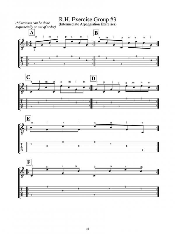 This book, while organized progressively, is constituted of all pieces that are developmental in nature for a beginner's technique. It is therefore recommended but not necessary to go through the book in a stepwise fashion. In addition the pieces can be broken in to several technique categories( i,m studies, arpeggio studies, chordal, etc.) and some pieces fall in to several of these categories. To ease the student into reading on the guitar the pieces have been arrange in very manageable keys, no more than 1# used.