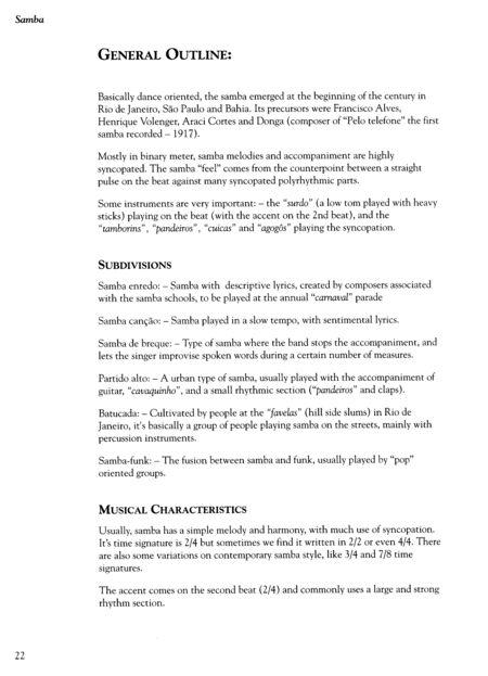 So te esperando (Song & accompaniment example) 17 samba variations.