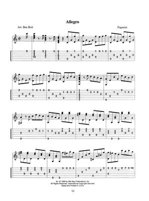 PAGANINI FOR ACOUSTIC GUITAR. Tutti i pezzi tranne i capricci sono sul CD. Caprice in e no.9, caprice in a minor no.24, allegro, 4 andantinos, 3 allegrettos, andante, 4 sonatas, 3 valtzes, andantino in c, allegretto in a, allegretto in a minor, valtz in c, rondo in a minor, rondoncino, valtz in e, sonata in a, sonata in c. CD TAB.