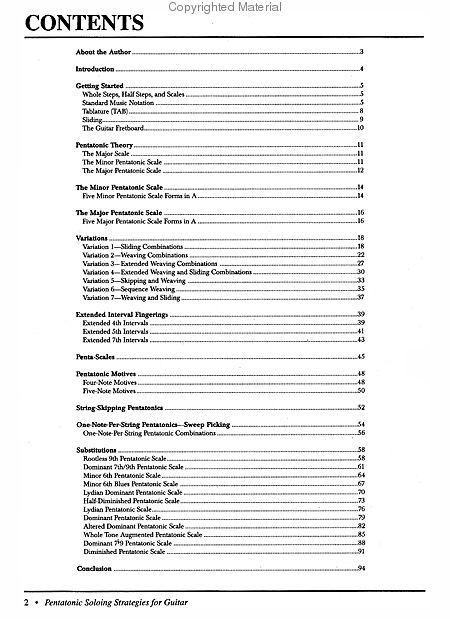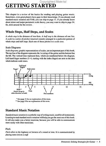 This is not a beginner's book. To use it effectively, you should already have a working knowledge of music, music theory, and the minor and major pentatonic scales. However, a quick review of the basics is included on page 5. A review of the minor and major pentatonic scales follows (starting on page 11), after which you will learn many new and exciting ways to manipulate and rework these basic scales. Most importantly, practical applications are provided.