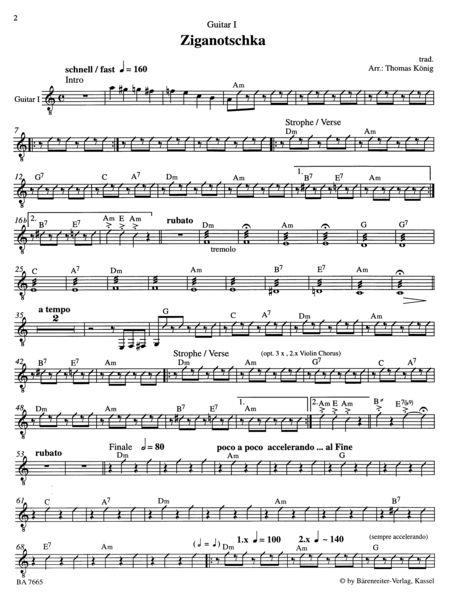 accompaniment part, one or two parts with guitar patterns, and bass.