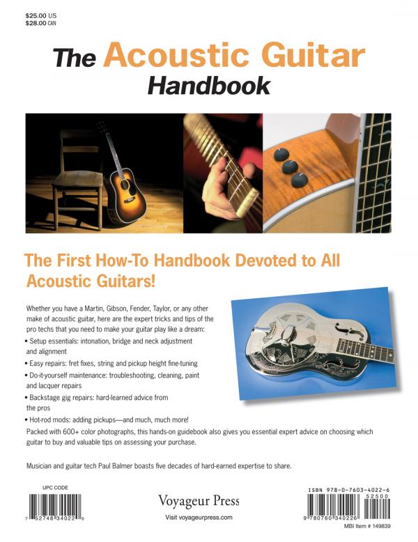 This is the first hands-on how-to manual devoted to acoustic guitars. This guidebook shows owners and dreamers the basics of selecting and buying acoustic guitars; performing maintenance and repairs like tuning, setting intonation, doing fret repairs, adjusting bridges and nuts, and troubleshooting; doing spur-of-the-moment stage-side fixes; and adding some basic “performance” enhancements like aftermarket pickups and more.