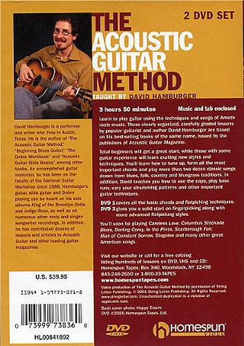 These carefully graded starter lessons are based on David Hamburger's best-selling books, issued by the publishers of Acoustic Guitar magazine (HL#00695648, 00695649, 00695666, and 00695667). Total beginners will learn how to use a pick and form all the most important chords, while those with some guitar experience will learn fingerpicking styles and other essential techniques. More than two-dozen classic songs are taught, drawn from blues, folk, country and bluegrass traditions. Includes music and tab. 230 minutes.
