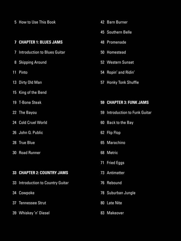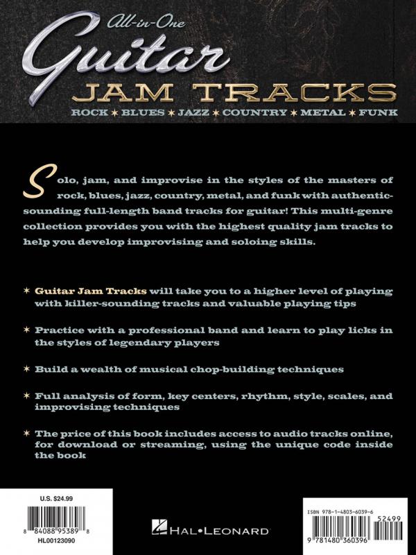 Solo, jam, and improvise in the styles of the masters of rock, blues, jazz, country, metal, and funk with authentic-sounding full-length band tracks for guitar! This multi-genre collection provides you with the highest quality jam tracks to help you develop improvising and soloing skills. Go to a higher level of playing with killer-sounding tracks and valuable playing tips. Full analysis of form, key centers, rhythm, style, scales, and improvising techniques is included.