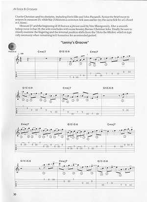 Do you want to develop greater fingerboard familiarity and improvisational fluency, and learn a lot of licks at the same time? Then, regardless of your level, this book is for you. The goal of this book is to demonstrate how fingerings can be applied in a realistic jazz setting, and to help players get a better handle on negotiating the guitar's fingerboard and improvisation in general, while learning a hip solo over a cool background. This book has a number of dynamic features, including... - A methodical, position by position look at improvisation. - A focus on phrasing. - Cool, repetitious grooves that give the player a chance to develop skills without the added complication of having to change to a new scale or key center. - Swinging solos that cover the range of a given fingering or position. - Formulas for the major modes and a variety of other scales. Each solo contains a number of hip phrases, licks, and patterns that take advantage of the related scale position and fingering. In addition to developing fingerboard familiarity and improvisational skills, the solos also provide good sight-reading material.