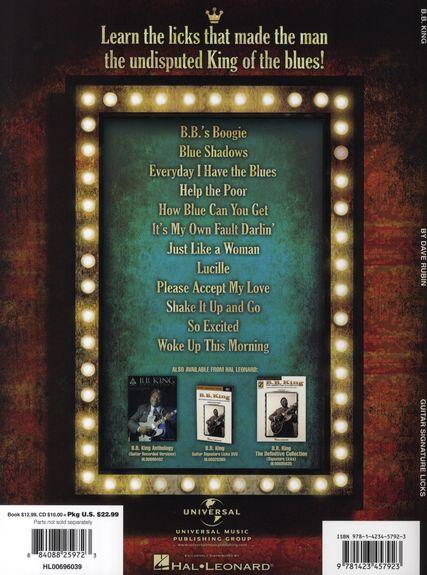 Impara i guitar licks che hanno fatto di B.B. il Re indiscutibile del Blues! David Rubin ti insegna 12 assoli autentici di B.B King: Boogie • Blue Shadows • Everyday I Have the Blues • Help the Poor • How Blue Can You Get • It's My Own Fault Darlin' • Just like a Woman • Lucille • Please Accept My Love • Shake It Up and Go • So Excited • Woke Up This Morning.