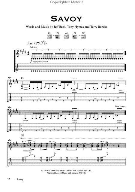 This is one of Beck's most harmonically complicated uacks, written by Tony Hymas and Simon Phillips. Taken from the THERE AND BACK album, the intra features Hymas' piano skills as he plays fast arpeggios that lead into an almost orchestral sounding section with Jeff playing a high melody. The main tune is a D minor, bluesbased guitar riff that is followed by a slide guitar melody in A. The suaightforward rock harmony of these sections conuasts well with the more harmonically complex parts. The solo is typical of Beck's aggressive style with fast flurries of notes and double string bends raising the excitement level through the roof! Although Beck is an accomplished slide player, this is one of his few performances on record. In later years he mastered the art of faking slide with his trem-bar.
