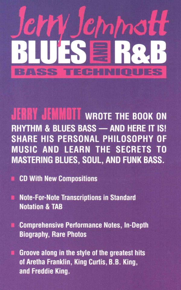 Jerry Jemmott wrote the book on R&B bass, and here it is! This book/CD pack examines Jerry's personal philosophy of music and teaches the secrets to mastering blues, soul and funk bass. Includes a CD with new compositions that demonstrate the techniques he used with legendary performers such as Aretha Franklin, King Curtis, B.B. King and Freddie King. Includes note-for-note transcriptions, comprehensive perfor-mance notes, an in-depth bio, and rare photos. 80 pages