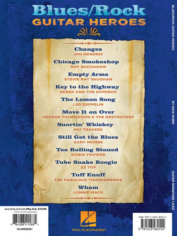 Dave Rubin examines the styles of Hendrix, Roy Buchanan, SRV, Led Zeppelin, Lonnie Mack and other blues/rock heavyweights by dissecting a dozen top songs: Changes • Chicago Smokeshop • Empty Arms • Key to the Highway • The Lemon Song • Move It on Over • Snortin' Whiskey • Still Got the Blues • Too Rolling Stoned • Tube Snake Boogie • Tuff Enuff • Wham.
