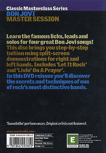 BON JOVI, STYLES & SECRETS. Con altri musicisti. Per due chitarre. Potrete imparare facilmente senza intermediari, suonando direttamente insieme al video, tutte le parti della chitarra. Lo schermo sarà diviso in due, con chiare immagini di entrambe le chitarre. Ogni canzone mostrata anche lentamente. Con: you give love a bad name -wild in the streets -let it rock -livin' on a prayer -wanted dead or alive. DVD
