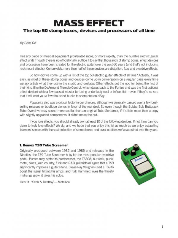 200 stompbox reviews from the pages of Guitar World magazine! The ultimate buyer's guide for fans of distortion pedals, wah pedals, tuners, overdrive pedals, switching systems, flangers, fuzz pedals, tremolos and more! This awesome collection features the Electro-Harmonix English Muffin • Dunlop Cry Baby SW-95 Slash wah • DigiTech Scott Ian Black-13 Artist Series pedal • Coffin Case Bat Fuzz Pedal • Way Huge Aqua Puss MkII analog delay pedal • MXR Super Badass Distortion • and many more!