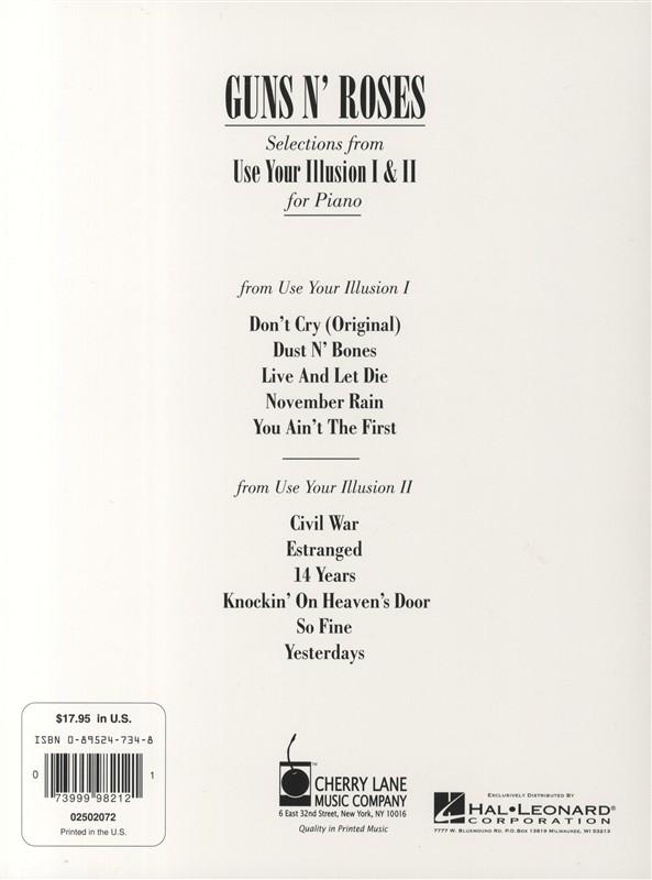 This collection contains the best songs from both of Guns N' Roses' Use Your Illusion albums, arranged for piano. Included are the mega-hits 'November Rain ' and 'Don't Cry,' plus nine more.