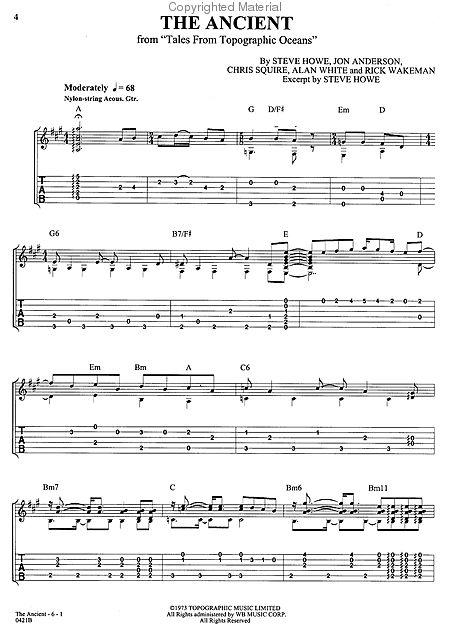 ISBN 0769290760. With guitar tablature, standard notation, chord names, guitar tab glossary and black & white photos. Progressive Rock.