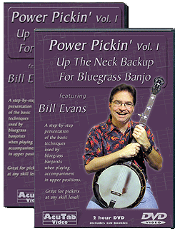 POWER PICKIN' VOL.1 up the neck backup for bluegrass banjo Bill Evans DVD TABLATURE