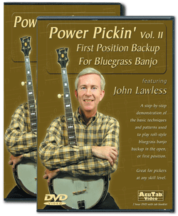 POWER PICKIN' VOL.2, first position backup for bluegrass banjo, J. Lawless. DVD TABLATURE