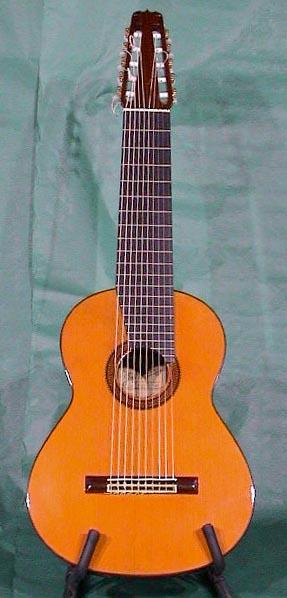 Ci racconta come dopo aver visto una Viola d'amore (che vedete nella fotografia) a Ramirez viene l'idea di costruire una chitarra con altre corde all'interno della cassa armonica che scorrono internamente al manico vuoto, e suonano per simpatia, ma Segovia non è soddisfatto perché confondono la melodia, così José pensa di costruire un pedale simile a quello del pianoforte per smorzare suoni non voluti, allora Narsiso Yepes gli telefona e gli dice che ha studiato la cosa e che deve solo aggiungere 4 corde basse accordate in: DO, LA#, SOL#, FA# (C, A#, G#, F#), e avrà lo stesso effetto di risonanza, mentre le corde si interrompono appongiandoci semplicemente la mano, evitando macchinazioni pedalistiche. Poi ci fu la grande prova, stando lontano Ramirez pensava che Yepes come Segovia gli inveisse violentemente contro, invece gli disse "in che stupendo pasticcio mi hai cacciato !",  così naque la chitarra a 10 corde che accompagnò da 1964 in poi tutte le incisioni e i concerti di Yepes.
