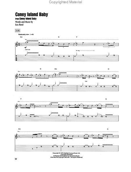 Here are 36 songs selected by Lou Reed's fan club in an unplugged, pared-down presentation with just the guitar chords and lyrics. Some of these songs are also shown in Play-It-Like-It-Is guitar tab, approved by Reed himself! Includes: Berlin - Coney Island Baby - Ecstasy - Goodnight Ladies - Guardian Angel - Heroin - NYC Man - Pale Blue Eyes - Ride Sally Ride - Rock and Roll - Sweet Jane - This Magic Moment - Walk on the Wild Side - Who Am I? - and more, plus an intro written by Reed and lots of rare photos. 196 pages
