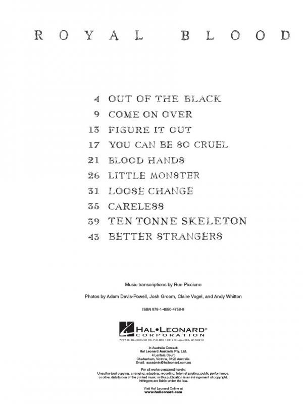 ROYAL BLOOD FOR GUITAR & BASS WITH TABLATURE CHITARRA LIBRO SPARTITI RECORDED VERSION