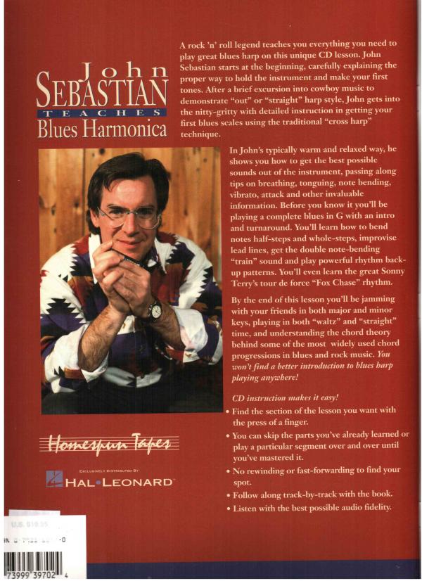 JOHN SEBASTIAN, TEACHES BLUES HARMONICA. A COMPLETE GUIDE FOR BEGINNERS. CD TABLATURE per