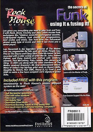 Leo Nocentelli of The Meters gives you everything you need to play funk guitar and fuse it with Rock, Blues, Country and Jazz. Learn master funk techniques like 'chicken scratchin', syncopated accents, multi-layered rhythms, funk chords and progressions, lead scales and tricks. See how funk has influenced almost every type of music and how it can make you a better player. Included free with this program is membership to lesson support system on the web where you can ask the teacher questions, chat with other students, down load sheet music and backing tracks, and more.