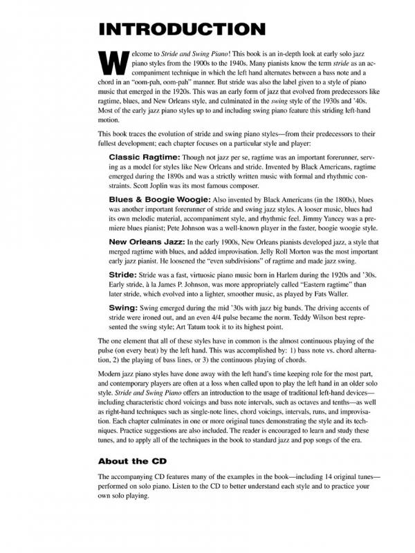 style. Stride and Swing Piano offers an introduction to the usage of traditional left-hand devicesincluding