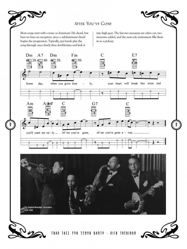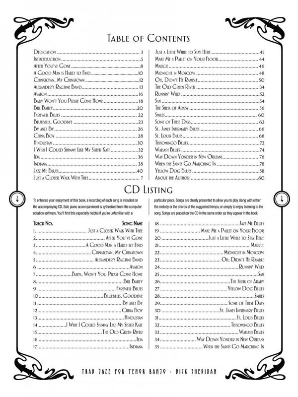 Part of a universal repertoire familiar to all traditional jazz musicians, the 35 standards in this collection are arranged for the tenor banjo but chord symbols make playing suitable for all banjo tunings as well as other chord instruments. Popular keys have been chosen, with melodies in notes and tab, plus large, easy-to-read chord diagrams, lyrics, commentary and more. Includes: Margie - Wabash Blues - Tishmingo Blues - Avalon - Back Home Again in Indiana - Shimmy Like My Sister Kate - St. Louis Blues - Jazz Me Blues - Old Green River - By and By - and more.
