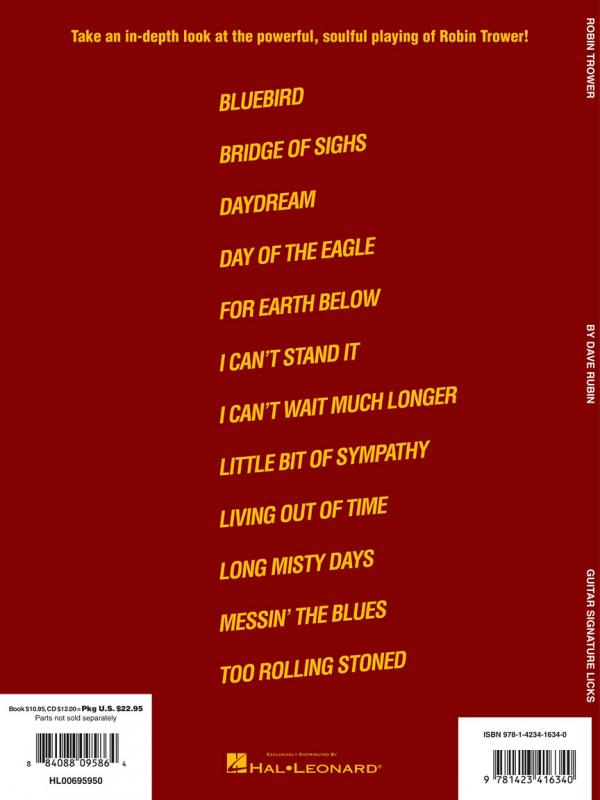 English rocker Robin Trower has earned a rabid following for his guitar work with Procol Harum and on his solo records. This book/CD provides an in-depth look at his powerful, soulful playing by exploring his most famous licks from a dozen songs, including: