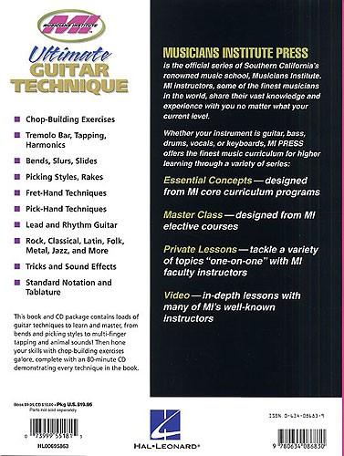 From bends and picking styles to multi-finger tapping and animal sounds, this book/CD pack contains loads of guitar techniques to learn and master. Hone your skills with chop-building exercises, and use the demonstration CD to master every technique in the book. Includes: chop-building exercises - tremolo bar, tapping, harmonics - bends, slurs, slides - picking styles, rakes - fret-hand techniques - pick-hand techniques - lead and rhythm guitar - rock, classical, Latin, folk, metal, jazz and more - tricks and sound effects - standard notation and TABLATURE