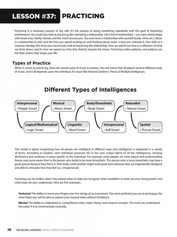 Expand your bass knowledge with the Bass Lesson Goldmine series! Featuring 100 individual modules covering a giant array of topics, each lesson in this Blues volume includes detailed instruction with playing examples presented in standard notation and tablature. You'll also get extremely useful tips, scale diagrams, chord grids, photos, and more to reinforce your learning experience plus 2 audio CDs featuring performance demos of all the examples in the book!