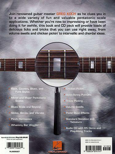 Join renowned guitar master Greg Koch as he clues you in to a wide variety of fun and valuable pentatonic scale applications. Whether you're new to improvising or have been doing it for a while, this book/CD pack will provide loads of delicious licks and tricks that you can use right away, from volume swells and chicken pickin' to intervallic and chordal ideas. The CD includes 65 demo and play-along tracks. 80 pages.