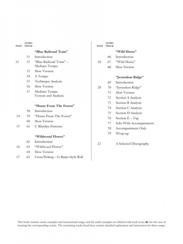 Tony Rice is known world-wide for his spectacular technique, brilliant improvisation and powerful soloing. In this lesson, he personally passes on to you the style he has developed during his two decades as the top bluegrass flatpicker of his generation. In careful detail, Tony analyzes licks, runs, solos and rhythm parts to hot bluegrass songs and fiddle tunes that will challenge and delight all flatpickers. Before long you'll be picking solos to the following essential bluegrass tunes, 24 pages