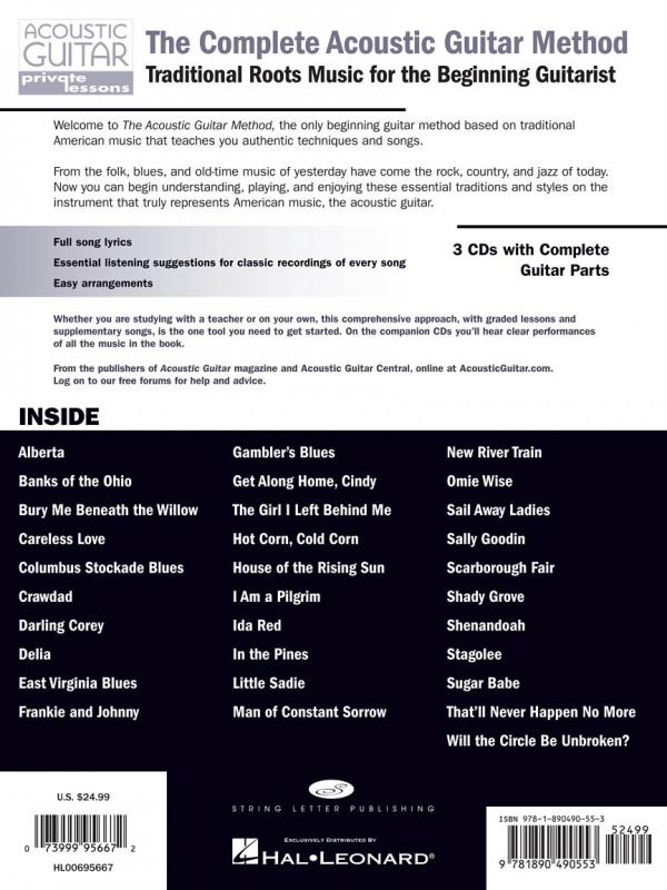 A complete collection of all three Acoustic Guitar Method books and CDs in one volume! Learn how to play guitar with the only beginning method based on traditional American music that teaches you authentic techniques and songs. Beginning with a few basic chords and strums, you'll start right in learning real music drawn from blues, folk, country and bluegrass traditions. You'll learn how to find notes on the fingerboard, expand your collection of chords by learning songs in various keys, and learn different kinds of picking patterns. When you're done with this method series, you'll know dozens of the tunes that form the backbone of American music, using a variety of flatpicking and fingerpicking techniques.