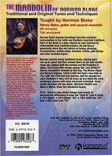 Norman Blake teaches old-time and original instrumentals in Celtic and Southern mountain tradition, chosen for easy learning by intermediate-level mandolin players. He gives advice on tuning, phrasing, ornaments, double-stops, tremolos, drones and much more. 9 songs, including: John Brown's March, The Hollow Poplar, Father's Hall, Jack Danielson's Reel, Mandolin Fanfare. 90 minutes.
