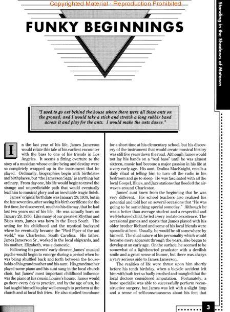 Bassist James Jamerson was the embodiment of the Motown spirit and groove – the invisible entity whose playing inspired thousands. His tumultuous life and musical brilliance are explored in depth through hundreds of interviews, 49 transcribed musical scores, two hours of recorded all-star performances, and more than 50 rarely seen photos in this stellar tribute to behind-the-scenes Motown. Features a 120-minute CD!