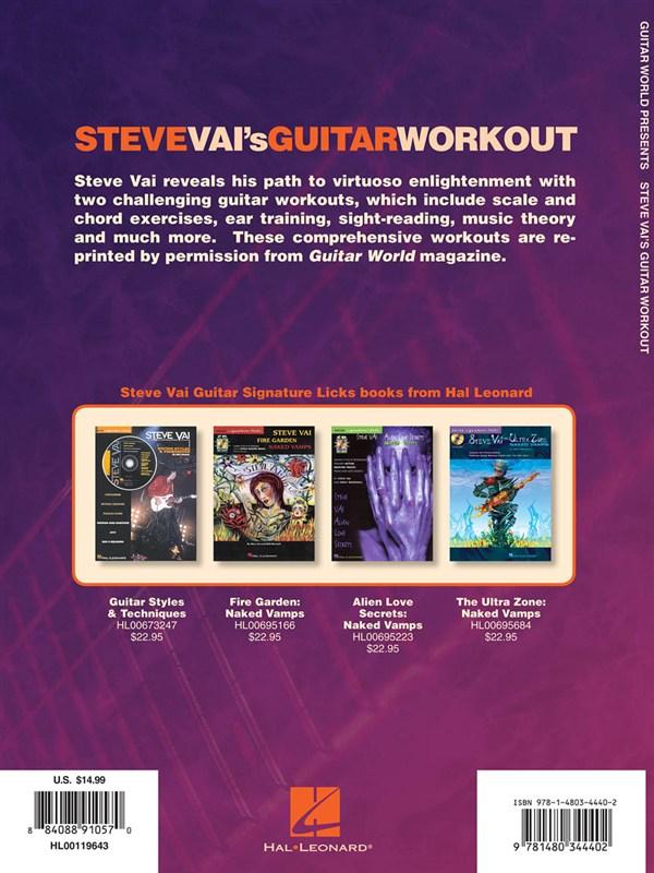 In Guitar World Presents: Steve Vai's Guitar Workout, Steve Vai reveals his path to virtuoso enlightenment with two challenging Guitar workouts – one 10-hour and one 30-hour – which include scale and chord exercises, ear training, sight-reading, music theory, and much more.