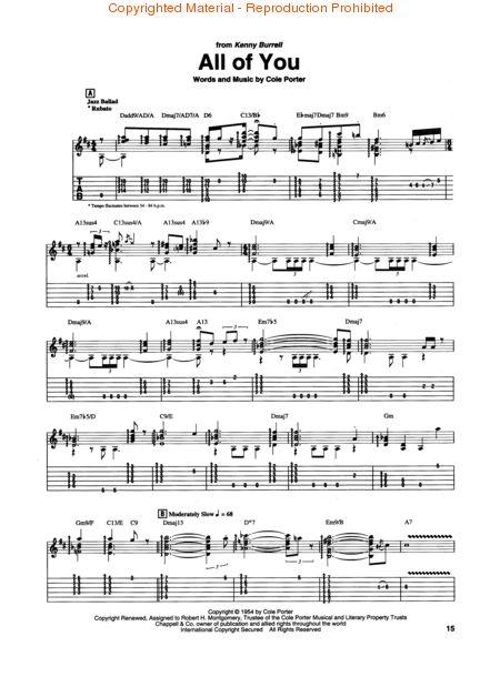 BURRELL KENNY BEST OF GUITAR TABLATURE LIBRO ALL NIGHT LONG-All Of You-Body Soul-Broadway Cheetah