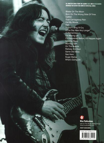 All nineteen songs from Taste and On the Boards – the only two studio albums released by the band Taste before Rory pursued his solo career. The band's sound was characterized by Gallagher's guitar playing, which was so impressive that when the band performed at the Isle of Wight festival alongside Jimi Hendrix and The Who in 1970, they were called back for five encores. All songs are presented in guitar tab arrangements complete with full lyrics.