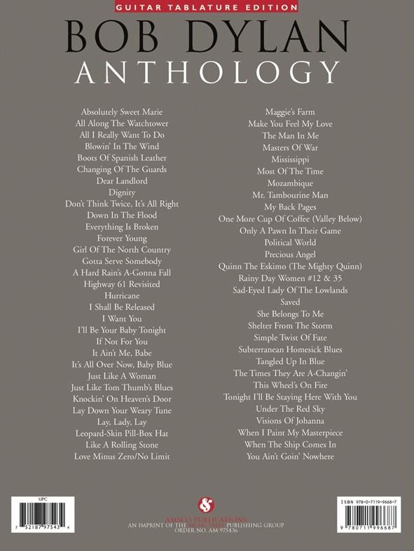DYLAN BOB ANTHOLOGY GUITAR TABLATURE EDITION BLOWIN' IN THE WIND-KNOCKIN' ON HEAVEN'S DOOR
