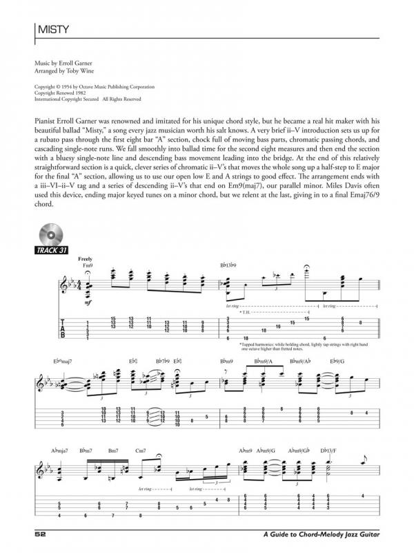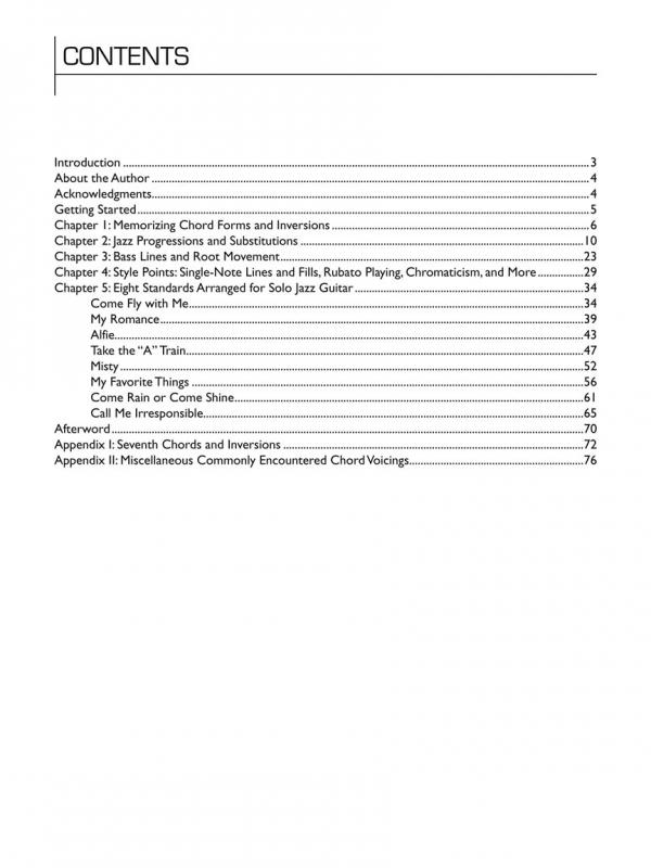 The world of solo jazz guitar is as vast and limitless as your imagination. “Chord-melody” style harmonizes a song's melodies and solos with full chord voicings and puts every facet of a guitarist's abilities to the test. This book introduces intermediate and advanced players to the chord-melody style. It teaches the requisite skills needed to play and create original arrangements, basic chord forms and inversions, chord substitutions, walking bass lines, and other tricks of the trade. The accompanying CD features recorded demos of the exercises and chord-melody arrangements in the book. Includes eight solo arrangements of: Alfie • Call Me Irresponsible • Come Fly with Me • Come Rain or Come Shine • Misty • My Favorite Things • My Romance • Take the “A” Train.