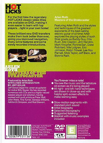 MASTERS OF THE STRATOCASTER, con Arlen Roth. String bending, mostrando la musica di: Hendrix, Jeff Beck, Eric Clapton, Bonnie Raitt, Ry Cooder, Mark Knopfler, Stevie Ray Vaughan, la solista, ritmica, dampening, picking, slide, country, blues, e gli ospiti: Mick Taylor, Buddy Guy, Eric Johnson, Otis Rush, Robin Trower, Parnell, Robillard, Davies, Thackery, Parris, Earl. DVD TABLATURE